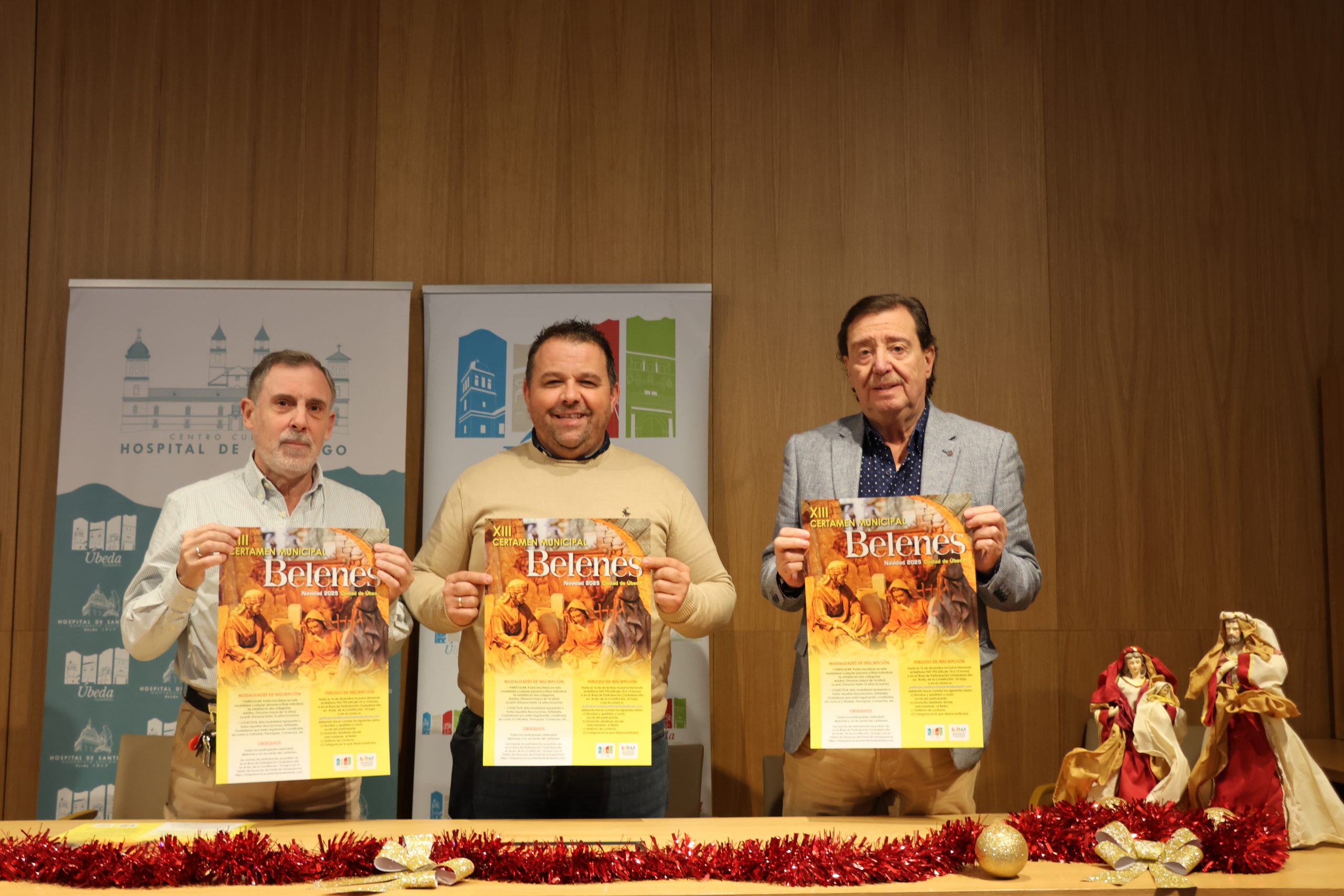 La Sala Julio Corzo del Hospital de Santiago ha acogido la presentación del XIII Certamen Municipal de Belenes ‘Ciudad de Úbeda’, una iniciativa destinada a fomentar la participación ciudadana, impulsar la creatividad artística y recuperar la tradición belenista que forma parte esencial de las costumbres navideñas de la ciudad. En el acto estuvieron presentes el concejal de Participación Ciudadana, Francisco de la Blanca, y dos queridos belenistas como son Andrés Sáez y Ricardo Lasa, quienes mostraron su respaldo a una nueva edición de este certamen ya consolidado en la agenda cultural navideña.